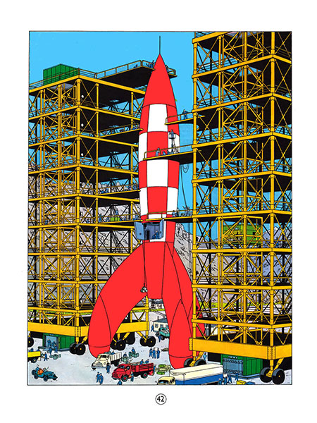 Tampoco me quiero olvidar del momentazo de "Tintin: Objetivo la luna" cuando llegan a ver el cohete y Hergé te va preparando en tono de humor toda la llegada con Tornasol hablando y de repente te planta la splash page que recrea la portada. Recuerdo estar leyendo y soltar un oohhh de admiración. Una muestra de la genialidad de Hergé |