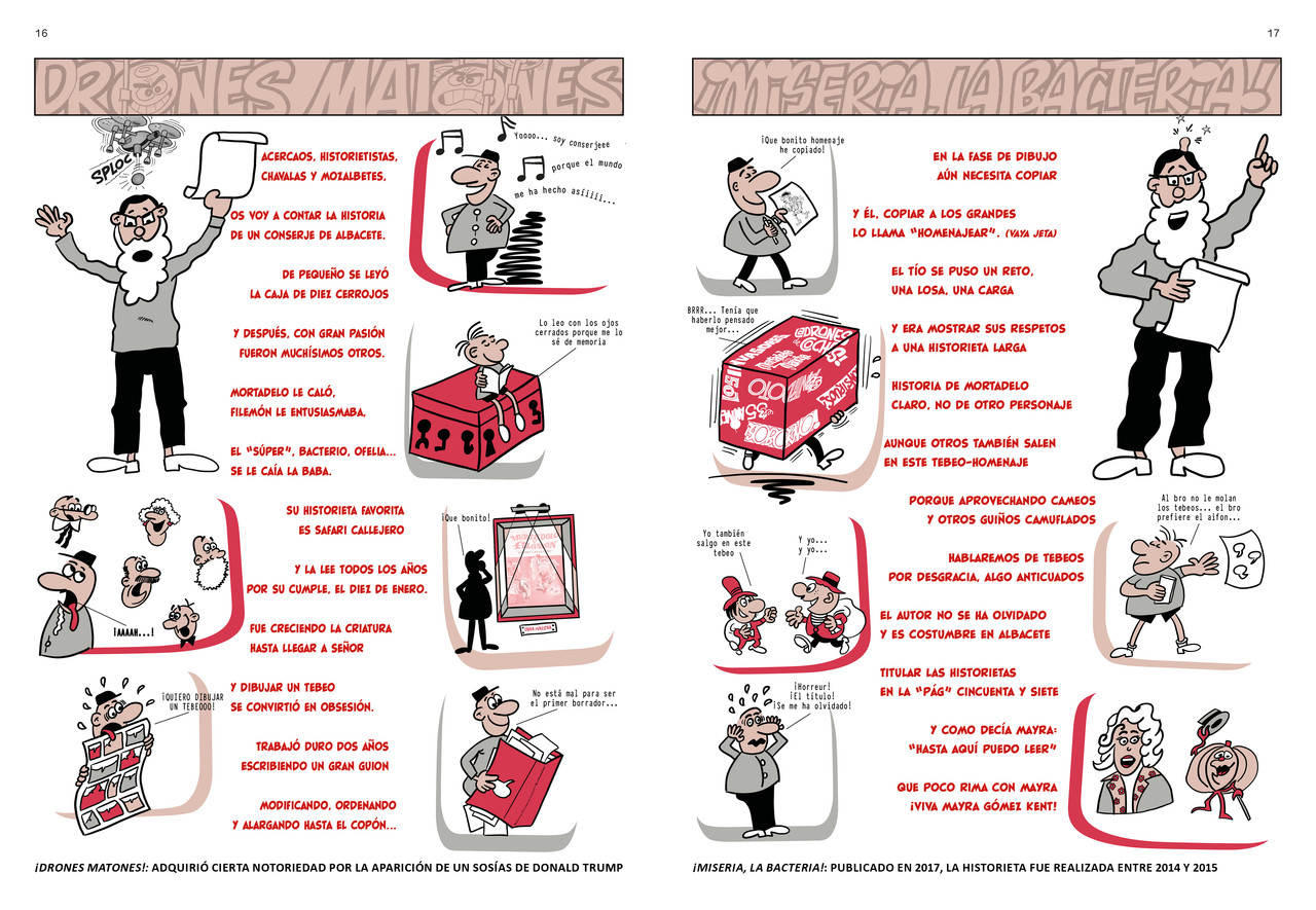 Al pie de cada página hay una frase, cortesía de Chespirot, al que le estoy inmensamente agradecido, al estilo de las frases de las revistas Bruguera.