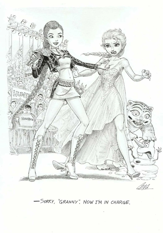 Los vende en páginas de subastas como catawiki, y hay gente que paga bastante bien por estos dibujos. No sé de ningún otro trabajo que esté haciendo en la actualidad. Es una pena, porque nadie le impediría hacer cómics y publicarlos mediante micromecenazgo, si es que no encuentra una editorial dispuesta a editárselos. Lo hacen autores como Jordi Bayarri, Óscar Martín o Pau, y supongo que no les va mal. En fin, supongo que debe de resultarle más cómodo hacer estos dibujos, y posiblemente también más rentable. Incluso puede que disfrute más con ello que con los cómics.