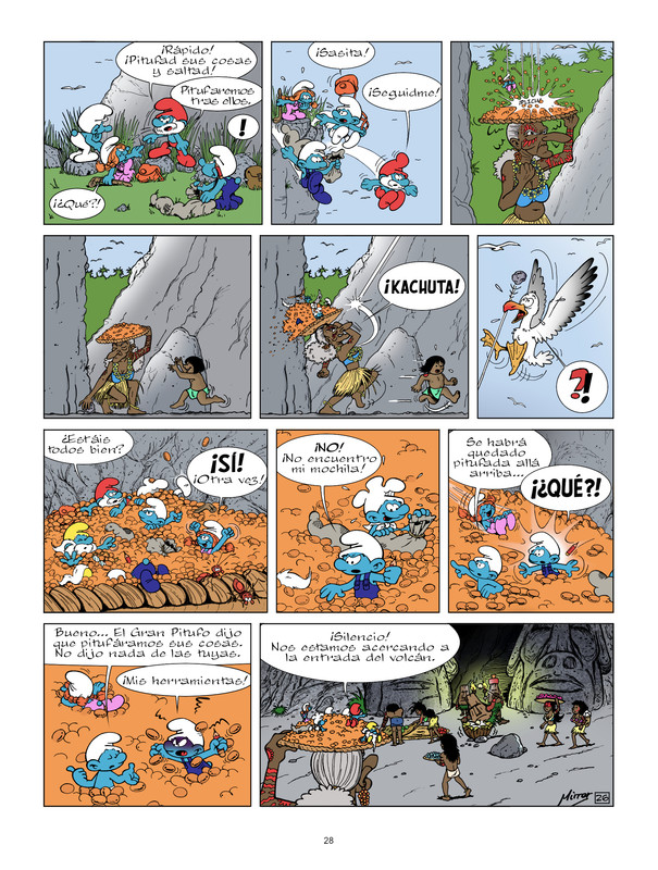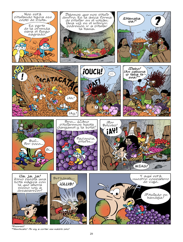 El número de página lo pongo, porque aparece en los albumes normales, sin coincidir con el número de viñeta, porque se cuenta también la portada interior y la del copyright (que la del copyright, en este caso, será una explicación de que la historia es adaptada y tal). _________________ ¿Qué pitufa más que un pitufo?